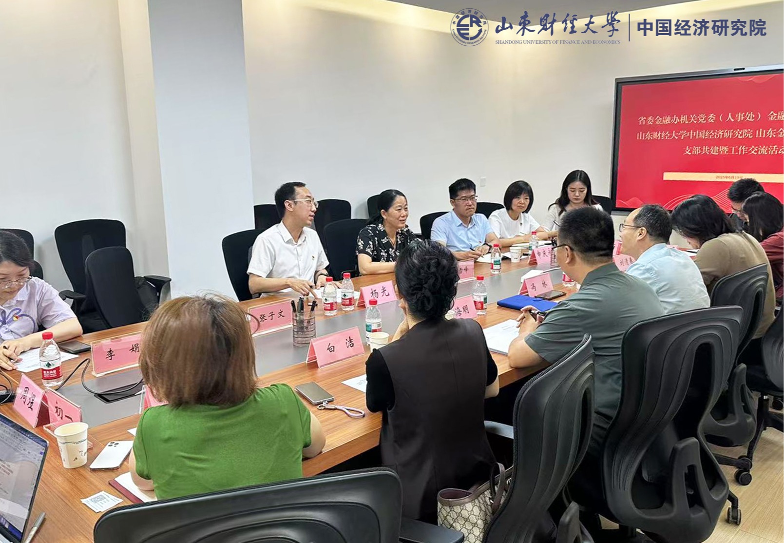 2025年6月26日,中共山东省委金融委员会办公室机关党委(人事处)、省委金融委员会办公室金融运行监测中心党支部与山东财经大学中国经济研究院党支部、山东金融发展研究院党支部在中国经济研究院会议室联合举行共建暨工作交流活动。活动围绕“数智赋能山东省金融运行监测及研究分析工作”主题,集中开展工作交流和主题党日活动。深入学习贯彻党中央关于金融工作的重大决策部署,深化党建引领,加强政校协同,共同提升金融研究和运行监测水平。图片 | 初一 编辑 | 周煜 审核 | 冯林